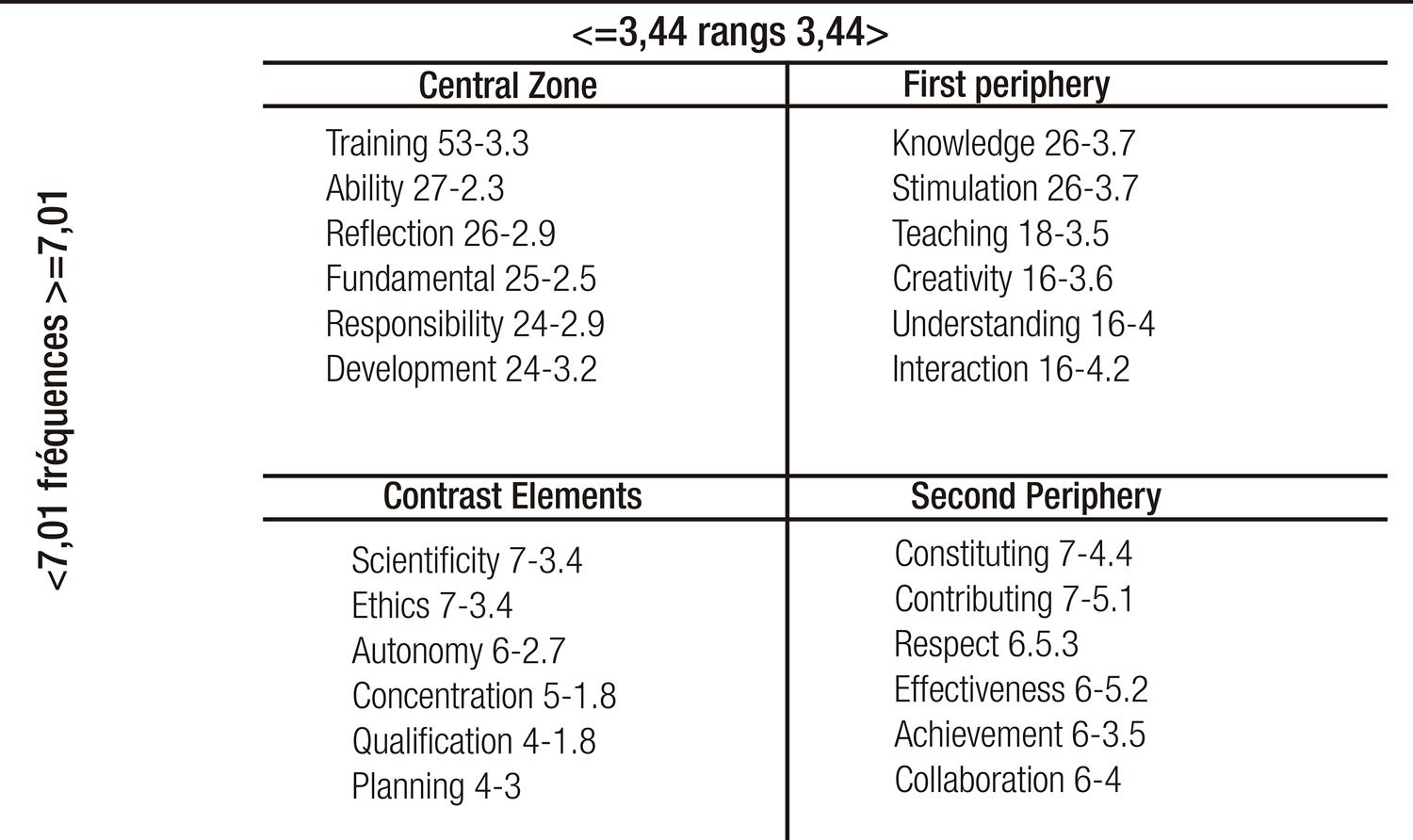 Desenvolvimento de competências, Representações sociais, Núcleo central, Elementos de contraste, Ensino superiorResumo